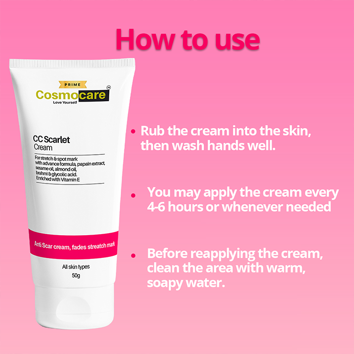 Each application of CC Scarlet Cream introduces your skin to an orchestra of potent ingredients, thoughtfully blended to achieve remarkable results. Embrace the journey of renewal with CC Scarlet Cream, enriched with Vitamin E. Unveil the magic of Glycolic Acid, Silicon Oil, and nature’s treasures such as Almond Oil, Sesame Oil, Nutmeg Oil, Clove Oil, Brahmi Extract, and Jojoba Oil. Embrace the promise of revitalized skin, enhanced with the power of the elements. Experience the transformation today and let CC Scarlet Cream be your guide to the art of renewed skin.