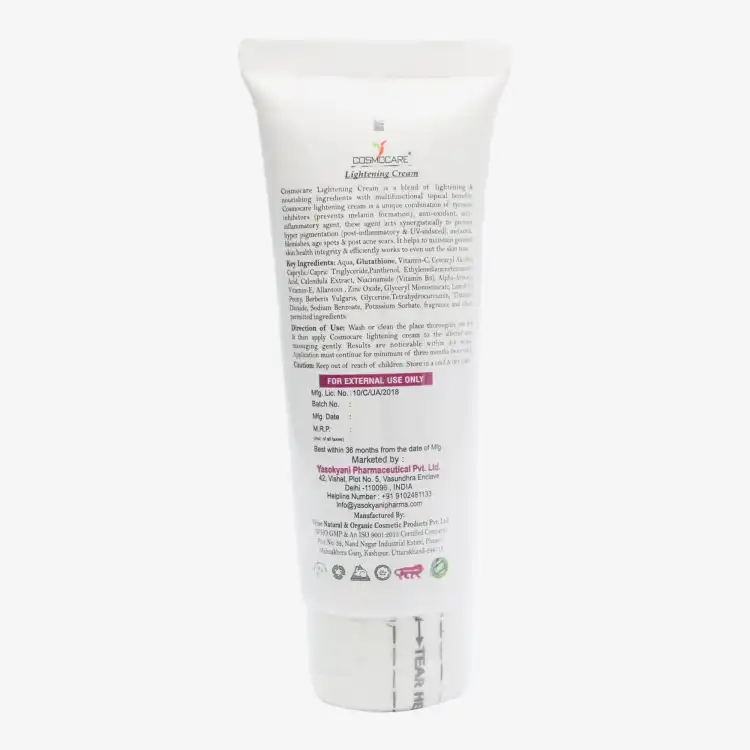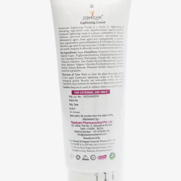 • Cosmocare Skin Lightening Cream is a blend of lightening & nourishing ingredients multi functional topical benefits.