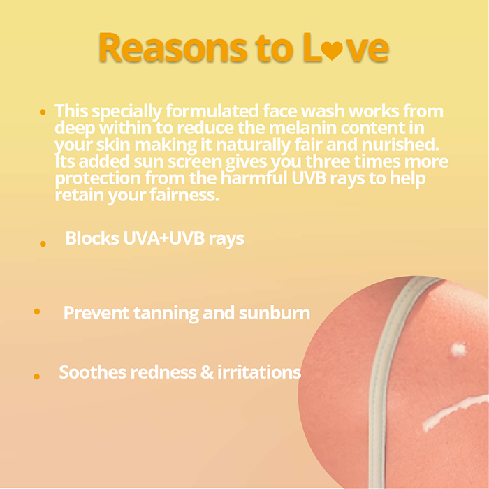 Elevate your skincare routine with Cosmocare Sunscreen Face Wash SPF 20+. Experience the transformative power of naturally fair, nourished skin, all while confidently embracing the sun’s rays. Specially crafted to work from within, this unique formulation not only reduces melanin content, promoting naturally fair and nourished skin, but also offers enhanced sun protection with SPF 20+. Immerse yourself in a transformative skincare experience that leaves your skin refreshed, youthful, and well-guarded against the harmful effects of UVB rays.