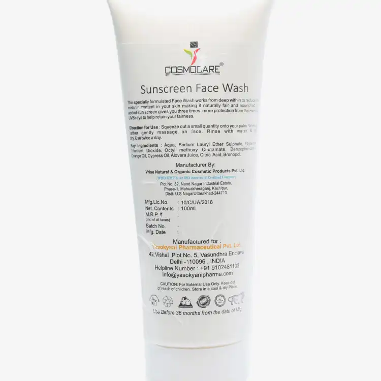 • Cosmocare Sunscreen Face Wash is specially formulated face wash works from deep within to reduce the melanin content in your skin making it naturally fair & nurished.