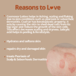 Introducing Cosmosor Lotion – your ally in tackling itching, scaling, and flaking caused by skin conditions like psoriasis or seborrheic dermatitis. Formulated with precision, this lotion combines the powerful properties of coal tar and salicylic acid to provide relief and restoration for your skin. Coal tar, a key component of Cosmosor Lotion, boasts a remarkable keratoplastic property. It functions by promoting the shedding of dead cells from the skin’s top layer, effectively reducing the excessive growth of skin cells. In turn, this dynamic action leads to a decrease in scaling and dryness, fostering an environment of healthier skin. Complementing coal tar’s effects, salicylic acid contributes to peeling and keratolysis, further aiding in skin renewal. Cosmosor Lotion draws its strength from a blend of carefully curated ingredients that work in harmony to provide optimal relief.