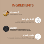Aqua | Lotion base Coaltar | Salicylic Acid | Shea Butter | Tetra hydrocurcumin | Vitamin A | D &E | Calcipotriol | Aloevera Gel | Glycerine | Zinc Oxide | Titanium Dioxide | Cocoa Butter | Sodium PCA | Argon Oil,Sodium Lactate | D – Panthenol | Potassium Sorbate | Fragrance & other permitted Ingredients