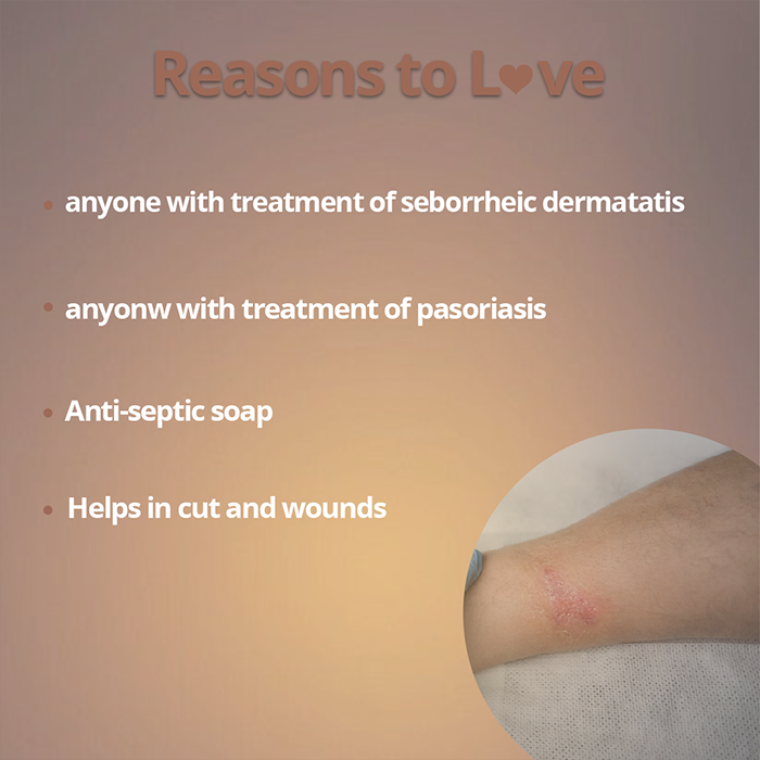 This remarkable soap is enriched with a potent combination of Coaltar and Salicylic Acid, renowned for their antiseptic, antibacterial, and antifungal properties. Coaltar, a time-honored ingredient in dermatology, boasts a century-long legacy of effectively treating conditions like psoriasis, acne, and eczema. Its antiseptic prowess helps control bacterial contamination, making it particularly beneficial for managing psoriasis symptoms.